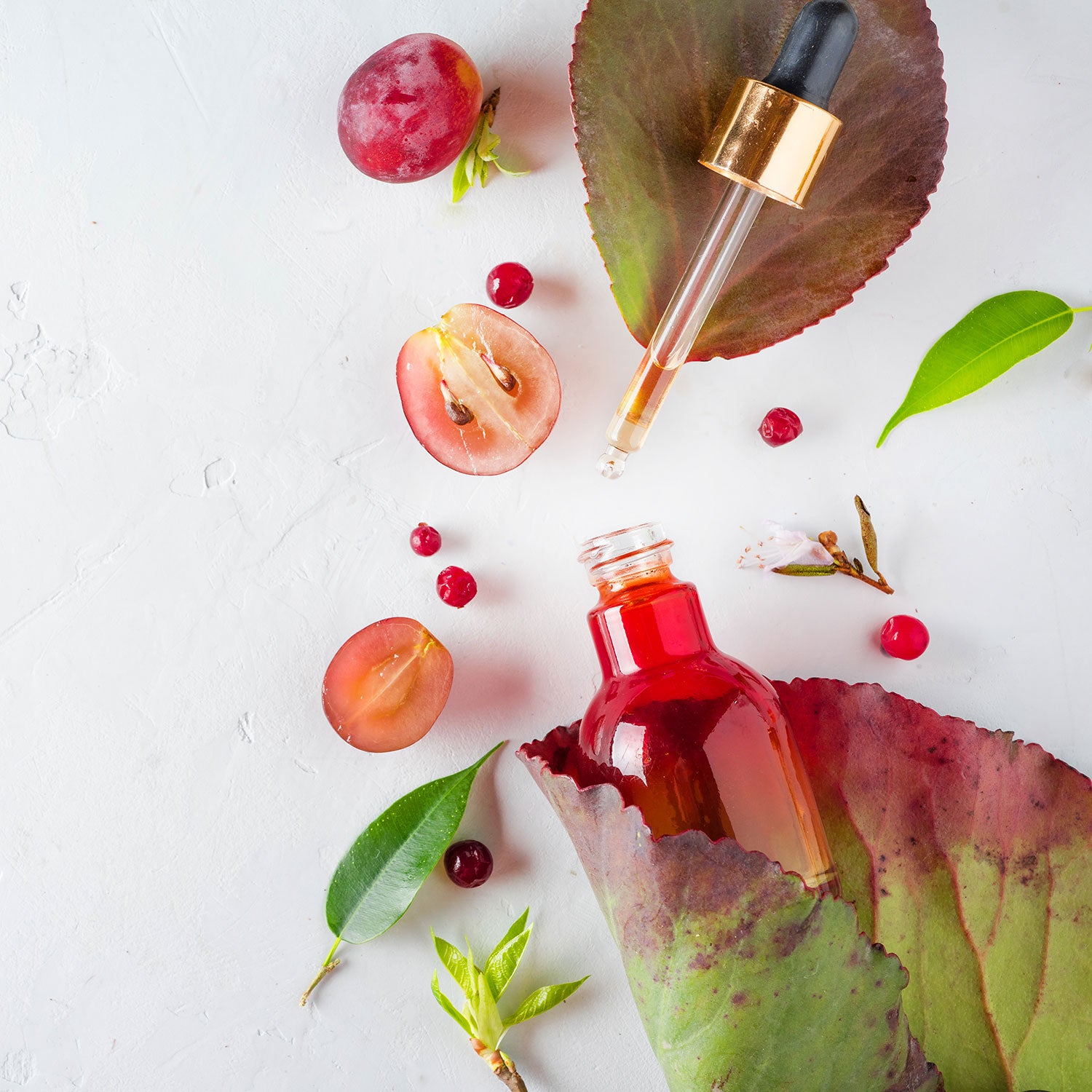 Die Lipidbasis all unserer Produkte ist kaltgepresstes Traubenkernöl. Dieses gewinnen wir durch die Weiterverarbeitung von Resten, dem sogenannten Trester, welcher bei der Herstellung von biologischen Weinen auf Weingütern anfällt. Durch ein mehrstufiges Pressverfahren und anschließender Separation der Tresterbestandteile werden aus 800 kg Weintrauben ca. 1 Liter Traubenkernöl gewonnen.